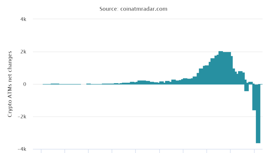 Although the crypto market began the year with a bounce following the FTX crises, Coin ATM Radar recorded that 1,587 Bitcoin ATMs were uninstalled and decommissioned in the month of January.