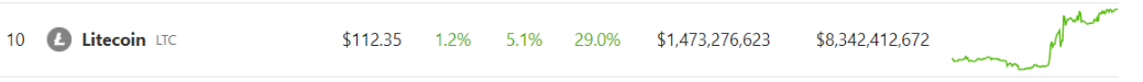 LTC has demonstrated a strong performance in recent days, currently trading at $112.35 according to CoinGecko. Over the past 24 hours, LTC experienced a notable rally of 5.1%, and within a seven-day timeframe, it surged by an astonishing 29.0%.
