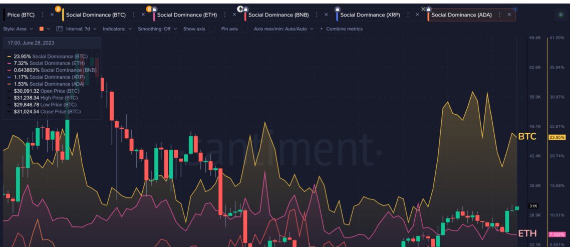 Social Dominance Of Altcoins Like XRP & Cardano Has Remained Low Recently